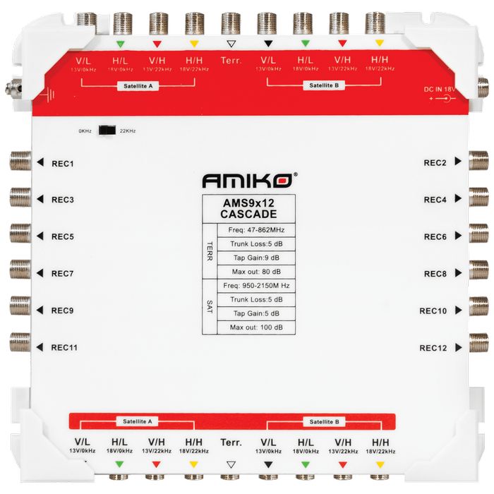 Amiko Multiswitch 9/12 sa dodatnim napajanjem, kaskadni - AMS9X12