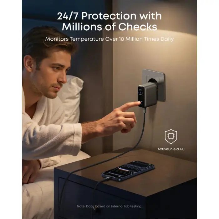 Anker 100W GaN Smart Display 3-port charger, dark grey
