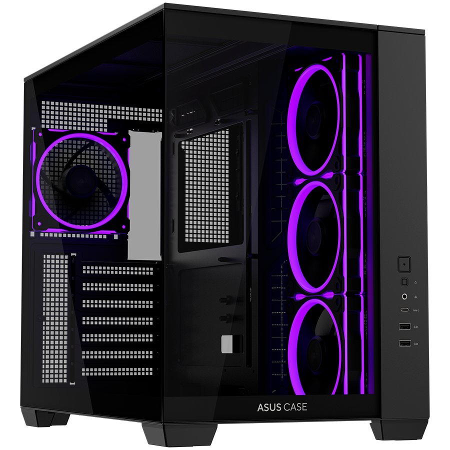 ASUS A32 PLUS ATX računalniško ohišje, kaljeno steklo, štirje 120mm ARGB ventilatorji, črno - 90DC00