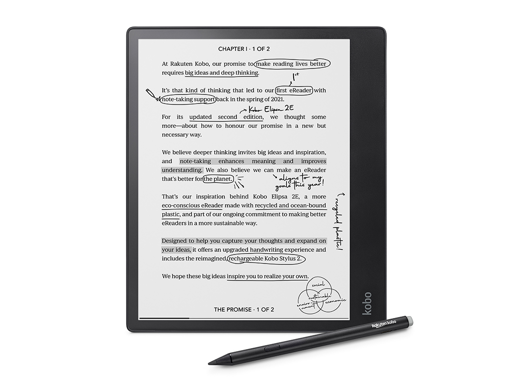 E-bralnik Kobo Elipsa 2E, 10.3'' Touch, 32GB WiFi + Bluetooth, črn - N605-KU-BK-K-BU