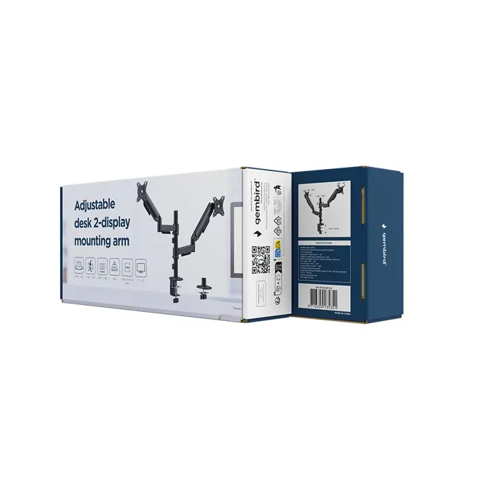 GEMBIRD ADJUSTABLE DESK 2-DISPLAY MOUNTING ARM 17”