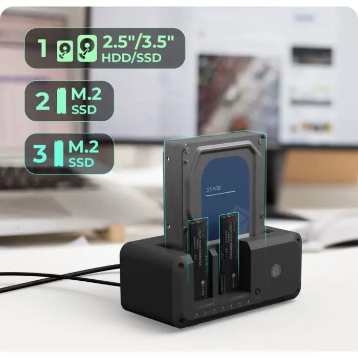 IcyBox IB-2924MSCL-C31 priklopna in klonirna postaja za M.2 NVMe SSD & 2,5/3,5 SATA SSD/HDD