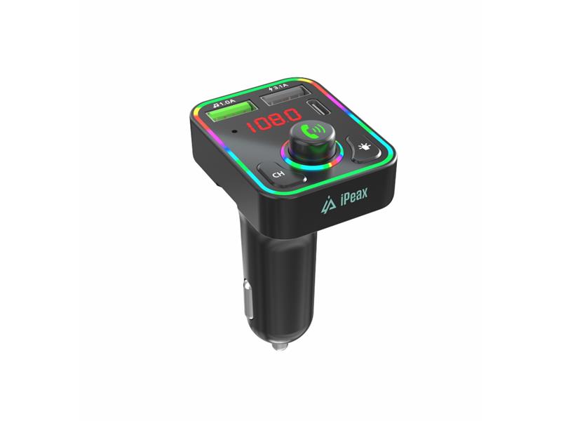 iPEAX FM transmiter, BT, HansFree, RGB, Fast charging 15W, USB-C,USB-A, LED - 03090099