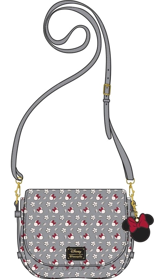 LOUNGEFLY DISNEY MINNIE SM GRAY AOP XBODY BAG