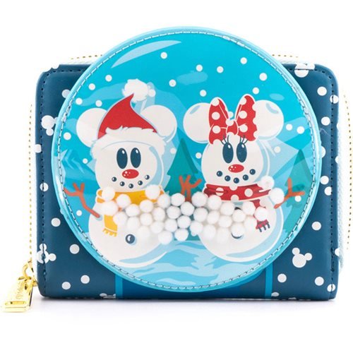 LOUNGEFLY DISNEY SNOWMAN MICKEY MINNIE SNOW GLOBE ZIP AROUND WALLET