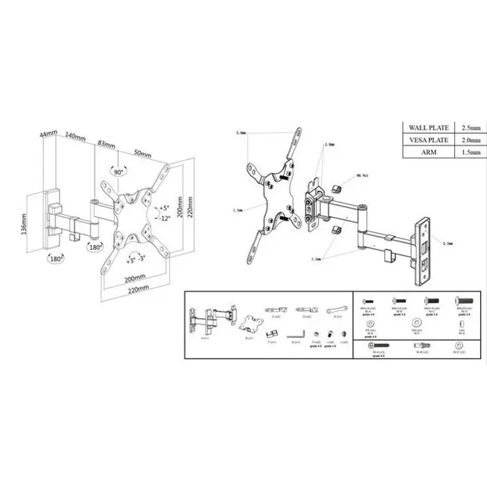 Manhattan TV nosač zidni 13"-43" do 20kg, crni