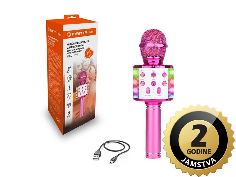 MANTA mikrofon bežični sa zvučnikom i karaoke funkcijom, LED rasvjeta MIC21-PKL - 05230025