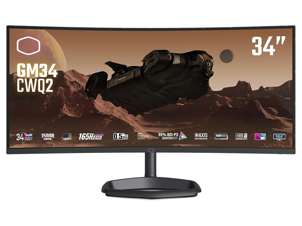 Monitor 34'' (87 cm) UWQHD VA 180Hz, HDR400, Ukrivljen, 2xHDMI, DisplayPort, USB-C DP Alt, zvočniki, Cooler Master GM34-CWQ2 - CMI-GM34-CWQ2-EK