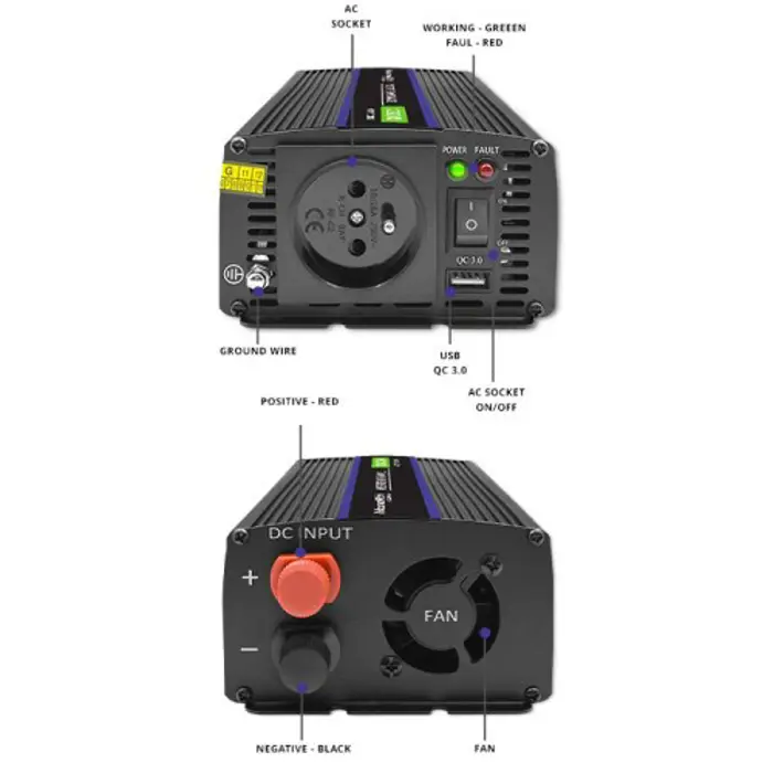 Qoltec Monolith power adapter/inverter Auto/Indoor 600 W Black