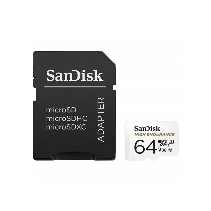 SanDisk High Endurance video microSDHC 64GB + SD Adapter Full HD / 4K video, up to 100/40 MB/s C10, U3, V30