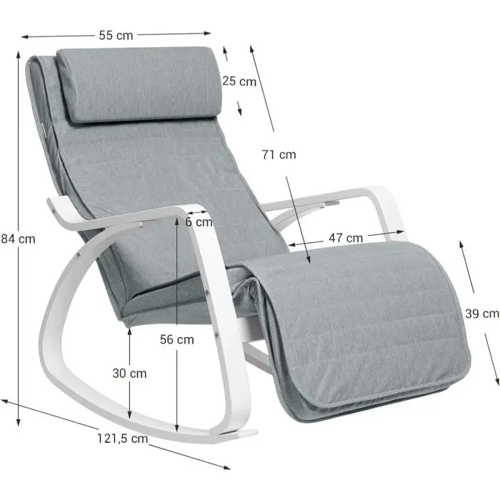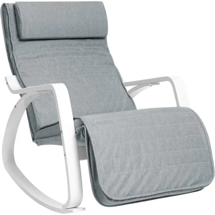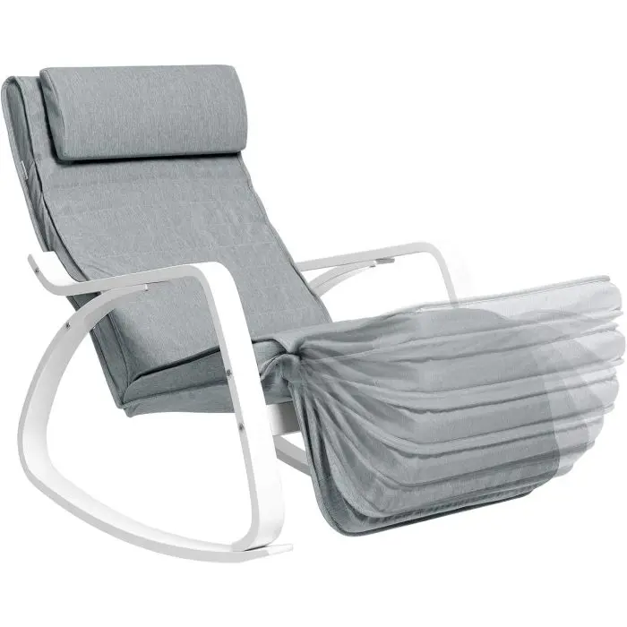 SONGMICS pomirjujoč leseni gugalni stol z nastavljivim podnožjem