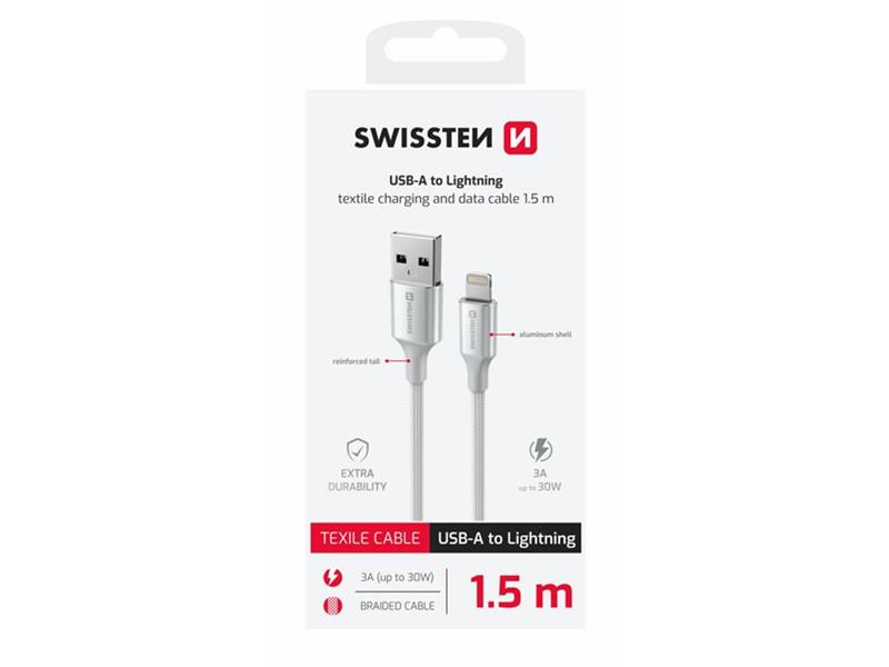 SWISSTEN kabel USB/Lightning TEXTILE II, 3A, 480 Mb/s, 1,5m bijelo-srebrni - 03080120