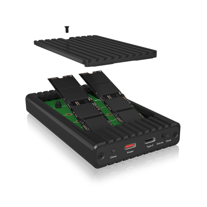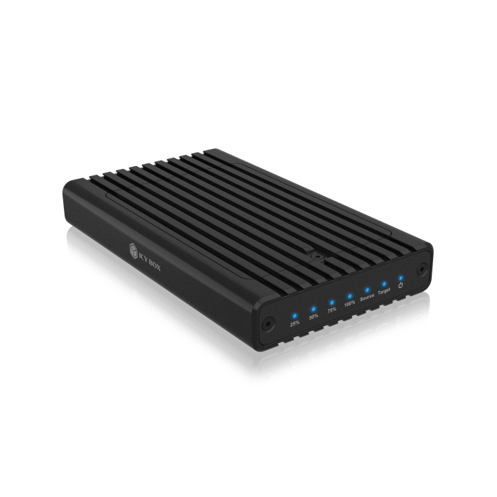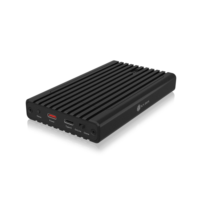 The translation of the given content "Icybox IB-2817MCL-C31 ohišje za 2 NVME SSD-ja s USB-C in USB-A priključkom" from Slovenian to English is as follows: "Icybox IB-2817MCL-C31 case for 2 NVME SSDs w