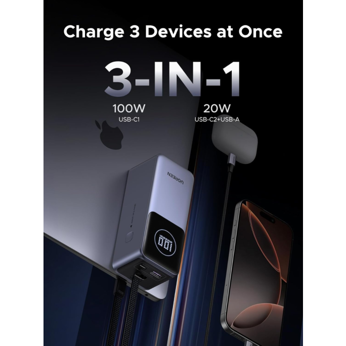 Ugreen prenosna polnilna baterija 12.000mAh, 100W