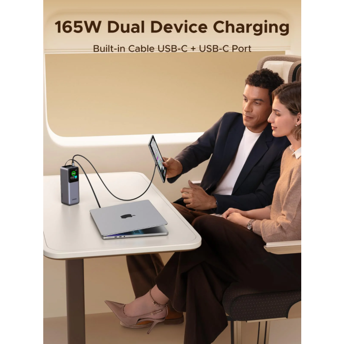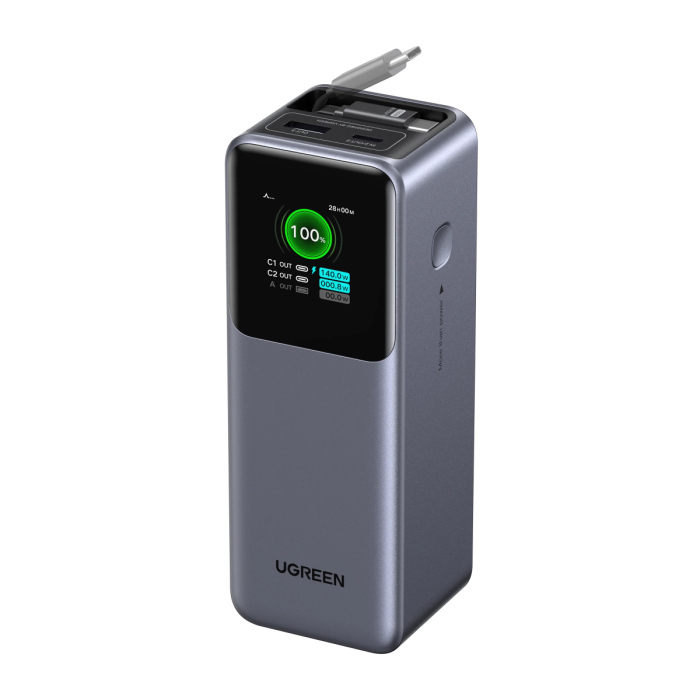 Ugreen prenosna polnilna baterija 20.000mAh, 165W s pametnim digitalnim zaslonom in vgrajenim kablom